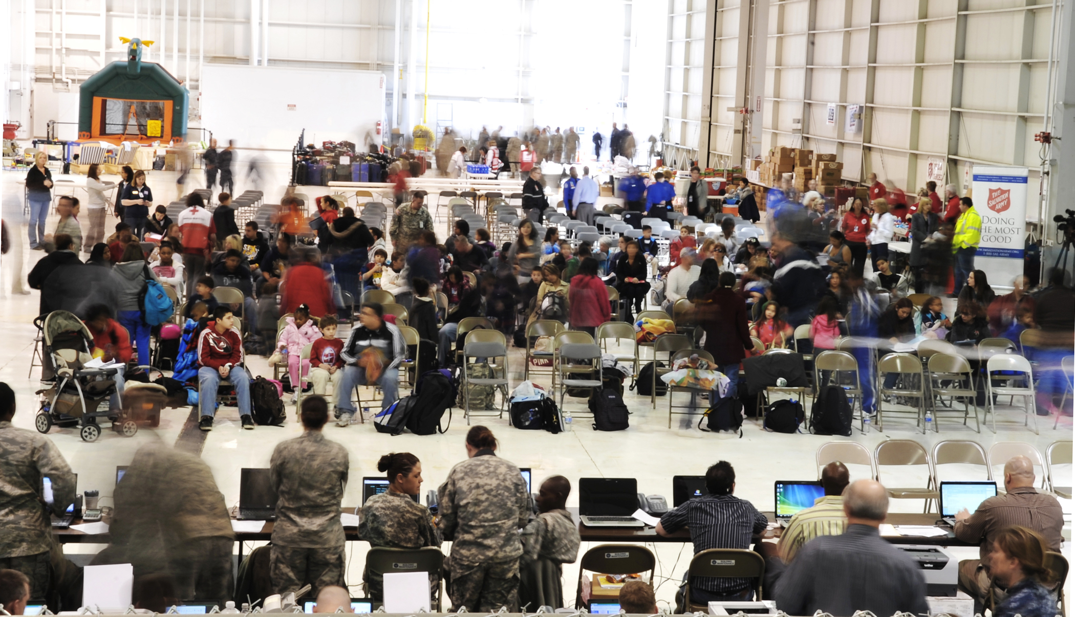 Military family members arriving from Japan begin their inprocessing March 24, 2011, in Denver. Family members voluntarily evacuated from Japan due to the recent natural disaster. (U.S. Air Force photo/Airman 1st Class Paul Labbe)